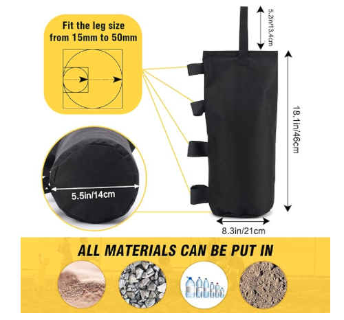 The Tent Sandbag Set is use with the tent to weight it down on hard surfaces.